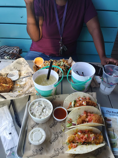 Were customers here pretty often since we are always at Aqualand. The food is VERY hit or miss. The fish and chicken tacos? Incredible! The pulled pork or brisket? It can be dry or it can be delicious. It really depends on the day. Not to mention (besides bar food) the items listed above are pretty much the extent of the entrées. If theyd add some more diversity like crab cakes, shrimp, and hush puppies, wed definitely come more often. The simple (and inconsistently good) menu just gets old.