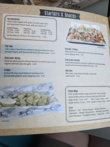 Love Pigtales! The view! What a neat place. They have really good BBQ and they are right on Lanier. My wife and I have been going for about a year now and its one of our go to spots. Be prepared for an outdoor dining experience in a chill environment. Boaters come off the lake, tourists from out of town, people bring their dogs, and the restarting, including the bar is completely outdoors. The staff is very friendly and on point. They move quick, so even if its full youll get a seat within 30 minutes. We look forward to coming back to Pig Tales many more times in the future.