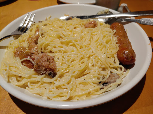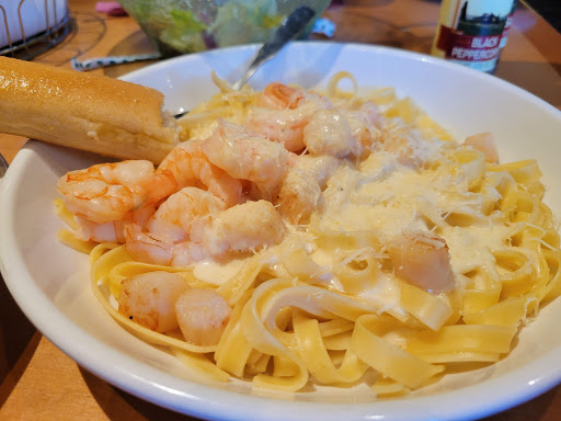 I dislike Olive Garden more each time I go. I can actually make better Italian at home, without spending $100 on what to me amounts to non-food. The last time I was here, I ordered a dish containing shrimp. It arrived, I took a bite, and immediately had to get rid of it. The shrimp had obviously turned. The server was great, apologized profusely, and went to replace the entree with only chicken. The manager brought the new dish out, and proceeded to coach me on how shrimp tastes, saying it was "No problem to remake the item, the shrimp had just been delivered. Im not a fishy fish kind of man myself, and lots of people just dont realize that shrimp actually has a fishy taste." I wasnt about to have an entire conversation with this guy about how at 33 years old, this wasnt my first rodeo with shrimp, and it was bad shrimp. I just wanted him to leave so I could try to eat a few bites before my toddler, who had finished by now, wouldnt allow us to stay any longer. They at least comped the entree, and I always tip well, but this isnt the kind of experience you spend 3 figures for on a weekday.