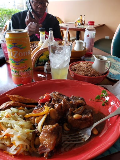2nd experience. I wont divulge my first visit and why it took me a year to go back. Anyway... However the portions have shrunk significantly. We ordered oxtails and got about 4 pieces in a box. On top of that we purchased $80.00 in food to go. My fiances meal was not ready (they said 10 more minutes) so my girlfriend and I sat at a table waiting and started tasting our food. The cashiers were staring and whispering. We were wondering what the problem was since the bill was paid. The lady came over to inform us that we couldnt take out our food while we were waiting. Since some other person would come out and get upset if they saw us eating. I was amazed. We either had to get plates to stay or leave! The tables were all empty! Are you kidding me? For $80 Ill go somewhere welcoming. On top of that they act like youre begging for the food. No customer service skills.