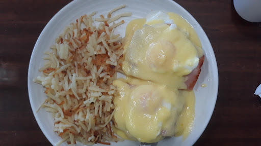 Ate breakfast here... Good prices. Very nice, friendly and professional service staff. Average food. Hash browns were almost raw. Sent them back and asked for well done and they brought them back very lightly browned. Next visit, had the same under-cooked hash browns and the sausage seemed like it had been precooked; sitting waiting to be ordered and barely warmed before sending out.