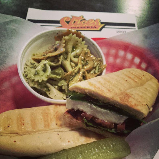 Great place to have lunch or dinner! Very friendly staff and management is some of the best around. Food is awesome ie I love the calzones.prices are fair for what you get. Hey you want a $3 meal youll get usually get a $3 meal. You want a great meal made fresh in front of you for a fair price then I recommend trying slices.