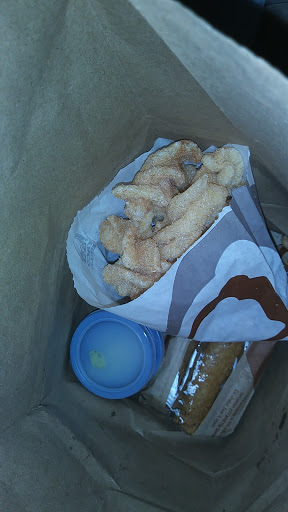 The drive-thru was quick and fast the bacon burrito taste like they used bacon bits the sausage burrito is the best choice and the mini breakfast bowl is the cheesy Fiesta potatoes with eggs and diced tomatoes in it its okay for the price and you just need something real quick