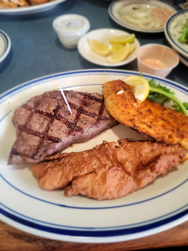 My husband and I just moved to the area and decided to try this restaurant on a Sunday afternoon. The parking lot was packed and the restaurant was too so we thought perhaps the food might be OK. My husband ordered a ribeye well done with a baked potato. I ordered a combination dinner with fried catfish and oysters. The ribeye was undercooked, not at all well done. But the worst part, was the catfish! The catfish that I was served tasted like dirty, soured, mop water! In the past 40 years I have eaten plenty of catfish from restaurants and freshly caught, and never have I eaten catfish that tasted this disgusting! I didnt finish my meal, and when I told my waitress about the fish her response was that here, I assume she means in Georgia, the cat fish taste like mud. She went on to explain how catfish are bottom feeders, as though I would not be aware of this. Regardless of where catfish feed, bottom top or wherever, this cat fish tasted like it had been sitting in nasty mop water. I even had my husband taste it and he promptly spit it out on his plate and looked like he was going to throw up. Not Once was the offer made to correct this problem and I was charged full price for my uneaten meal. I do not recommend anyone eat at this restaurant if actual, fresh, real seafood and fish is what youre looking for.
