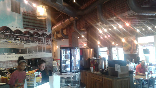 Great, laid-back lunch spot down in Hapeville specializing in locally sourced ingredients and killer buffalo chicken sandwiches. Seriously - the burgers are good and the sweet potato fries come with some kind of delicious sweet dipping sauce, but the magic is in the double stacked buffalo chicken sandwich. The place gets megabusy at lunch, which might make seating a challenge. Free ice cream! Ive never tried a milkshake or malt (too much food to go back to work after) but I want to. Free ice cream!