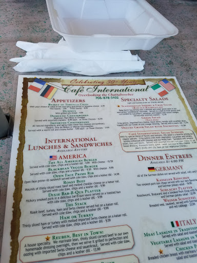 Helen is a quaint alpine village resort. This restaurant was created with that in mind.The Cafe international has casual dining overlooking the river featuring German, Italian, French and American food. Their sandwiches are excellent and there is a good variety beer to go with them. It is located on the main drive within walking distance of all the shops. Its the perfect place for a delicious lunch or dinner break.