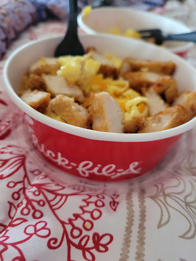Typical Chick-fil-A food. Facilities are nice. This is one of the slowest Chick-fil-As I have encountered. The parking lot gets congested easily due to to layout and required traffic flow.
