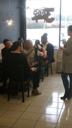 Really awesome food, pulled pork was moist, tender, and had a great smokey flavor. This place seems like it could be really popular but is very poorly run. Very plain, undecorated interior. I waited over an hour for my sandwich which is just too long for lunch during the work week. Especially since I was the only one in there! The menu is not put together well and the lack of any sort of combo selection was off-putting. I would have loved a sandwich combo that came with a side and drink, but instead its all just listed separately. Again, really good bbq thats worth a try but doesnt seem like the business is run very well.