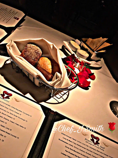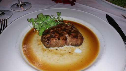 Excellent service and we like the French twist on this quaint American steakhouse with several table side prepared dishes. Learned the name means red meat; however, the seafood is equally as good. Love the red and black chic decor and the intimate setting is great for couples and groups. Tip 1: Not really kid friendly so I suggest getting a sitter. They even have custom chairs with their logo embossed on the back. First time dining for our anniversary in which I was allowed to select our table when I was greeted by the owner while looking at the menu outside and was impressed to make a reservation the day before. Tip 2: Very ltd seating so reservations are strongly recommended. Upon arrival we were greeted with champagne and a personalized card signed by each staff and a dessert..the crème brulé with fruit and creme was awesome! Now I know why theyve earned Zagat awards year after year. Thanks for making our special day great!