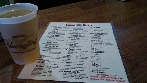 We went to the Village Burger on 2/26/16. The food was great and the service was quite speedy. I ordered the house burger and it arrived around 6 minutes later. The sauces were good and I really enjoyed the size of the to share foods. It was enough for the entire family and my son liked the burger so much that he ate 2! This is a great place and is surely recommended. The buns could be better and the restroom cleaner. Other than that great value!