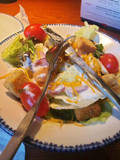 I went last night at 7pm, there was approx. 15 tables (4-6 customer) being used at the time. It took 20 minutes (720pm) for our waitress to get our drink order in which we also placed our food order. It was 740 before we received our drinks and were then told our salads would be right out. At 815 we asked about our salads. At 820 our salads were brought out. Our waitress had been to our table 3 times in a 1 hour and 40 minute time frame. All drinks on the table had been empty for 30 minutes. At 840 she brought more bread which we already had and we asked how much longer for food. We were then informed that this was a dinner rush and it would be about 40 minutes. At this point I told her I wanted our food to go. Five minutes later she brought all of our food out in to go boxes. Brandy the "manager" came over to our table to see what was going on looked at us, rolled her eyes, laughed and walked off. Our waitress dropped the "f bomb" a few times and we left. As we were leaving there was 3 sets of customers up front all of which had been waiting for help for over 20 minutes. This place is an absolute joke.