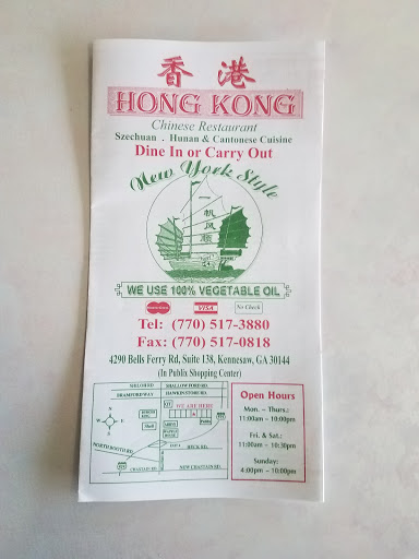 We order take out all the time from Hong Kong Chinese. They use fresh ingredients, dishes are tasty, well seasoned and not too salty or greasy. We recommend them highly and have never been disappointed (except on last Christmas we had to go for Chinese at another place as they were closed and that other restaurant was terrible) Best NY style Chinese in North Cobb/Cherokee and well worth a drive. Dine in options are rather austere.