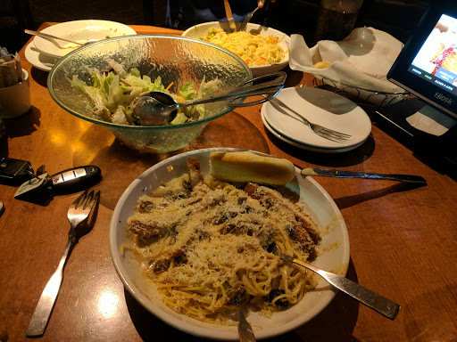 I have been to a lot of Oliver gardens, but this is the worst experience I have had in one. The food was great but the service was awful. I sat at the bar for 10 minutes before even greeted. When I was able to finally order an appetizer I had no silver ware to eat with. The young lady be hind the bar was to busy talking to the other bartender about her personal business. The gentleman bartender didnt greet any one who was at the bar. There was a father and son there next to me that got even worse service. This is not the service I am use to seeing from Olive Garden.