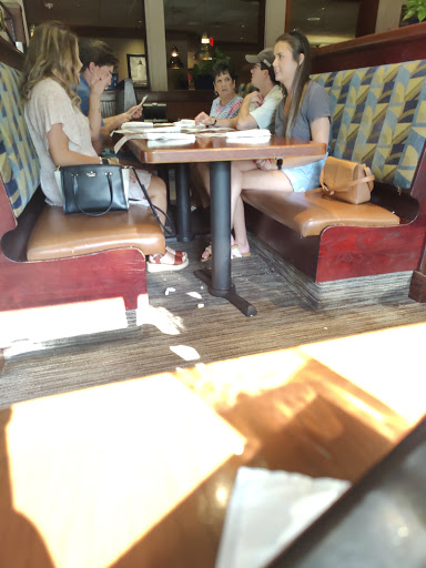 We ate here on a Wednesday night. There was hardly any wait. They just had to move tables and chairs around for our party of seven. The hostesses were very nice. Our waiter actually wrote our order down (not something that you see much anymore but Id rather them write it down than get it wrong). The orders came out hot within a reasonable period of time. The waiter was attentive with refills. All in all this was a relatively nice visit to one of our favorite chain eateries.