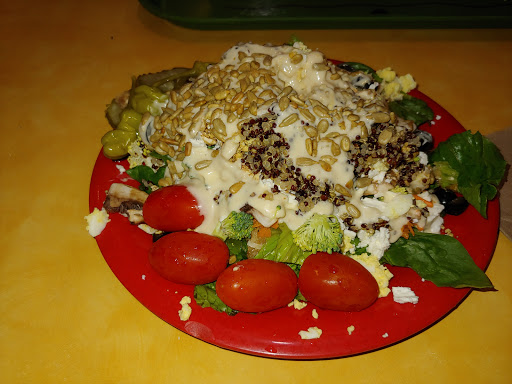 clean place, busy at lunch, the salad bar was very fresh, and had more than i could eat, hot fresh soups were very tasty, bread/pasta choices all looked good, i saw them making the pasta dishes fresh! and fresh cookies, etc. with choice of frozen yogurt! i will go back.
