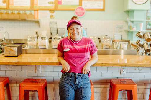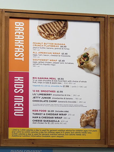 Clean and fresh look amd feeling. Tasty smoothies and sandwiches... i love the peanutbutter honey banana crunch flatbread amd blimey limey smoothie. Quick and easy to get buy doesnt break the bank.