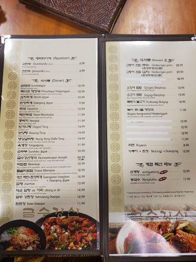 YUM!! Great food! Tasty and healthy! Dinners with a variety of side dishes, tasty meat dishes - spicy chicken, squid, beef, rice and noodle dishes, tasty soups - tofu and seafood...such a VARIETY of TASTY food!! And all served by a wonderful group of Korean ladies - thanks!