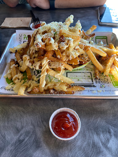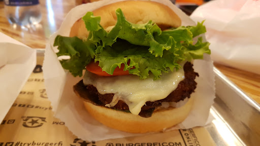 Ive been waiting for months for them to open and IT WAS SO WORTH THE WAIT! I am not a huge beef eater so I was unsure how Id like it. I chose the conflicted burger. It was both a beef patty and a veggie patty. THE veggie burger is TO DIE FOR! It is so moist, and flavorful. My boyfriend and I shared a regular size fry and you can totally tell the difference in them. The frys are cooked in peanut oil and are awesome. I cannot wait to come back and try them all! Customer service is great, and it is a beautiful environment.