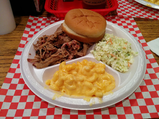 Good BBQ. The portions are generous. Ribs are meaty and lean, pulled pork plates can make two sandwiches. Plates come with two side which are very tasty. Two types of house labeled, locally made BBQ sauce, one mustard based the other sweet and peppery, both very good. Regular drinks available from water, soda or southern brewed tea. Family owned small business.