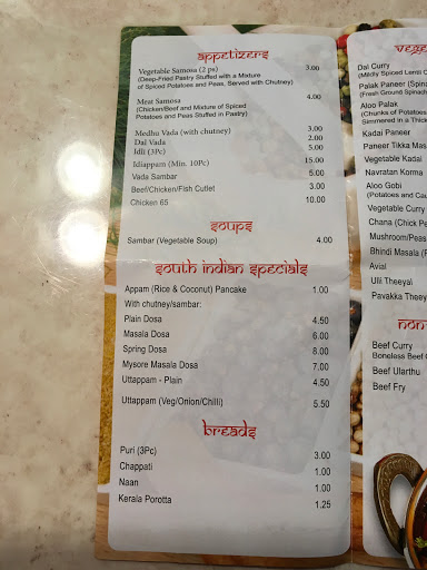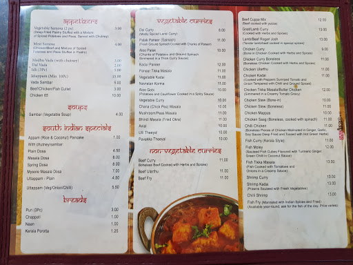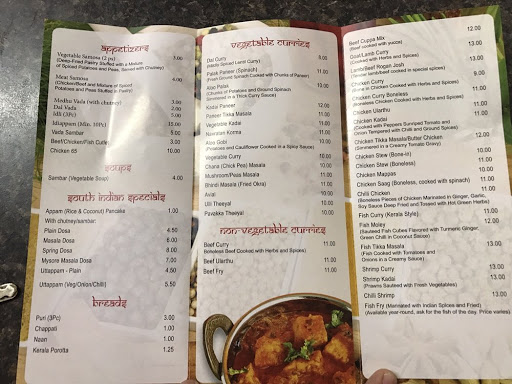 I am a Keralite by birth so I was thrilled to find this restaurant. The goat curry, meen curry were excellent. However, the Kerala parotta and puri were outstanding!! Best puri I have ever tasted and I have had puris from all over the globe. All made from scratch.