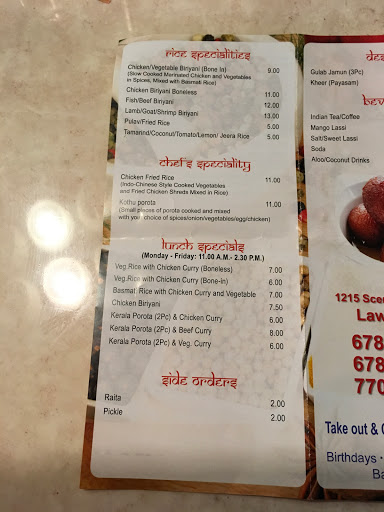 The décor could be better, but the food is exceptional! They have beef cutlets & curry, which are hard to come by in Indian restaurants. Their parotta is also straight Kerala style. Never thought Id see this in GA! Repeat customer.