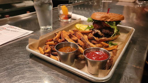 The communication breakdown between patrons and staff is unreal. Ive visited and been a patron a handful of times, different times of the week, to no avail. The food was edible at best. The scallops were fine but the lobster was overcooked and the rice was undecooked. I hadnt eaten all day and this is the south, else I would have walked out the food was soooo bad. The burger was frozen and the fries inedible. Most theyre staff seems poorly trained to move around safely and politely in confined spaces / walkways and tend to rush and/or bump into patrons. With reservations, established workflows, or well-engineered through ways this wouldnt be a problem. Have they consulted with a restaurant engineer, aficionado, or workflow specialist? Once the overextended bartender is available to make the cocktail his/her skills dont go unnoticed. The cocktail menu and its execution is quite solid. Dietary concerns are not noted on the menu, and main ingredients for dishes are only partially listed. That said, the waitress appeared knowledgeable of the menu and what was gluten free. The front womens restroom had a faucet that barely functions to clean your hands and unfortunately it collects water all over the counter. There is no way to dry your hands either.