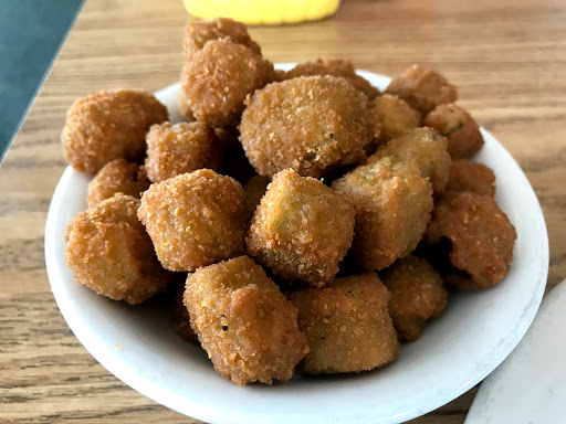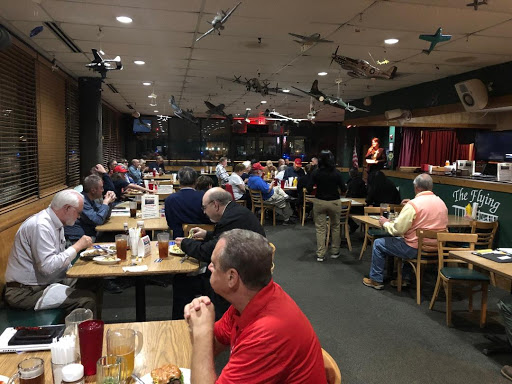 Love this place! Last year I went to The flying machine for first time:) Great Food atmosphere and service. REAL music played as I ate and amazing to watch airplanes takeoff and land.Fried Pickles for appetizer or snack highly recommend