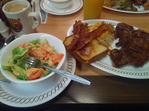Nasty nasty Nasty!!! This has to be one of the worst places I have EVER ate myself and husband went there for breakfast we both got hashbrowns and a burger we didnt say to add anything to the hashbrowns and we asked for the cheeseburgers plain only meat cheese and bun. So what do they do give us both burgers with everything on it and on top of it my husband had jalipinos in his hashbrowns are you kidding me ???? I took that right back so they gave us new hashbrowns but only took the stuff off the burger and gave us the burgers back Im sorry but that is unacceptable!! I dont eat the stuff they put on the burgers so you take the stuff off and give me a nasty burger back. I got my money back and went to IHOP where they get it right stay away from any of these waffle houses more like Awful House !!