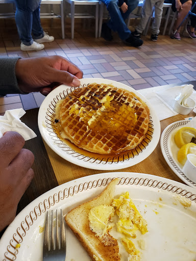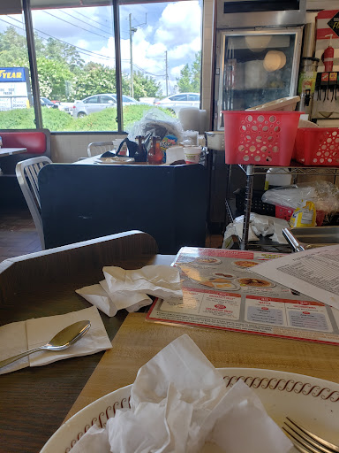 If I could give this place 0 stars, I would do that immediately. We walked in and waited while 2 tables were empty but hadnt been cleaned. 10 minutes later, we were still waiting. Eventually, we got up and moved the dishes ourselves, and a waitress stared at us instead of helping. We sat down and waited to be served. Another customer walked in and tried to sit where we put the dirty dishes, and the same waitress said, "those arent my dishes, Im not picking them up." After waiting several minutes at the table we cleaned, nobody even acknowledged our existence, so we walked out. That was just the last in a series of chances we gave to this waffle house. Go to the one on Riverside, its a few minutes away but light-years better in every way.