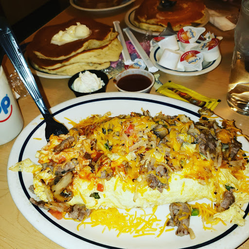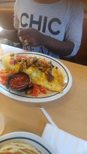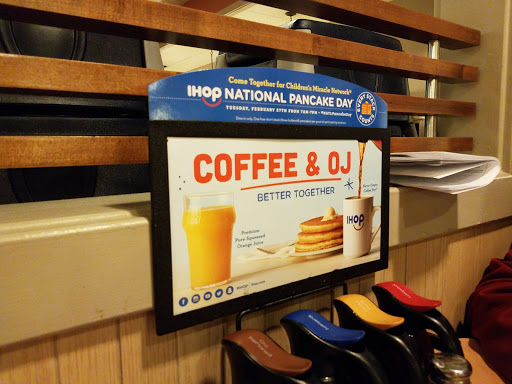 Not a good IHOP location. This is the third time Ive been here and everytime its something different. The first time they took 50 min for a to go order. Literally 5 ppl got their order before us and they offered no kind of discount or anything. The second time they had absolutely no juice. No orange, no apple, nothing at all. And this which is my last and final time they have no heat and its less than 30° outside
