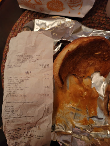 My husband and I were in the area, so we stopped at Popeyes on Hwy 78 for a late lunch. Our food was hot and delicious; and didnt take long to receive. The dining area was very clean including floors and tables. Used restroom while there and it was quite clean as well. Certainly will stop here again when on this side of town.