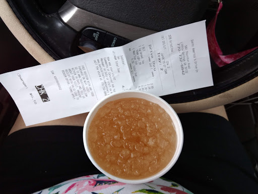 My daughter and I were headed back to Stone Mountain and wanted something sweet so we stopped by Sonic. Once we pulled up we noticed that there were barely any open spots so we settled for drive thru since it was only 2 cars waiting. We ordered some food as well as A Sonic blast and Slushy. The young lady that served us at the window was very nice and accommodating. They were quite busy so she apologized for the delay due to it being Happy Hour and personally made my Sonic Blast due to it being what we had waited on. Id wait again honestly because that was the best Sonic Blast Id ever had.. I wont disclose the young ladys name because Im contacting corporate about her great customer service. Yet I will definitely be back to this