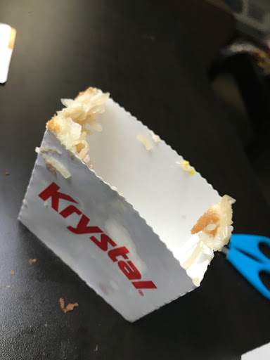 Stale food...even if it is cooked to order. Krystal burgers always taste like theyve been re-heated or something. Staff is always playing around and sarcastic. Even to the customers.