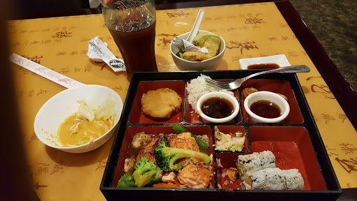 First time eating here after driving past for last 5 years. I was surprised by how nice the interior is. Staff was friendly. Hibachi steak (no grills, everything is cooked in the back) was mediocre as it was chewy and gristly. However the flavor was awesome and cooked exactly as I ordered it. Soup and salad both were fantastic. The sushi was pretty good (if a little steep) and the rolls (dancing salmon, out of control roll and spider roll) were beautiful when they came out. Was impressed by the number of different rolls. Candace our server was awesome and took excellent care of us. Will definitely be back for more sushi and to try their Chinese food.