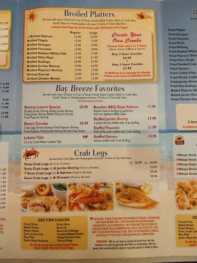Current 3.9 review is TOO HIGH on Google. Take a look at Yelp. Heres my 2017 review: 2 Stars. This older and "dated" family friendly seafood spot feels like a chain. Very ordinary food and decor. One full notch below a Red Lobster, but serviceable if you consider Red Lobster to be "fine dining." Lots of fried, deep fried, baked, but rather ordinary seafood. Lacks enough upscale grilled items, it has no bar and very ordinary drink options. The good news is they have "cheap, cheap" $5 a glass wine--the BAD news is its BAD wine that they probably paid $4 for the whole bottle. (headache alert). The nearby Marietta Fish Market is a notch better with a better menu, better decor (aquarium), a real bar, an actual wine and drink list and more grilled seafood options. There is nothing wrong with Bay Breeze. Its like a table-service version of Captain Ds if that is your style. Best seafood in town (albeit pricey) is at CHOPS Lobster Bar. Followed by The Optimist in Midtown. More mainstream is Atlanta Fish Market (still nice), Lure or Pappadeaux (mainstream, but great spicy New Orleans seafood). Also, good moderate-priced is Legal Seafood. Another modern seafood with higher-end options is St. Cecilia in Buckhead. Lots of seafood in Atlanta. But if Bay Breeze is around the corner and you dont care that much about high quality, good, beverages, good wine or upscale decor, maybe this will work for you. It did not work for us. Read other (similar) reviews. Positive note: Kid-Friendly. Bring them all.