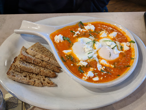 Wonderful breakfast and lunch cafe with a refreshing and unique menu, seasonal specials, and great hazelnut coffee! I recommend trying a new thing each time you come to find your favorite. Notable items are their scrambles, specialty pancakes, and the strawberry orange juice. Ive always had great service and a fun experience with family and friends.