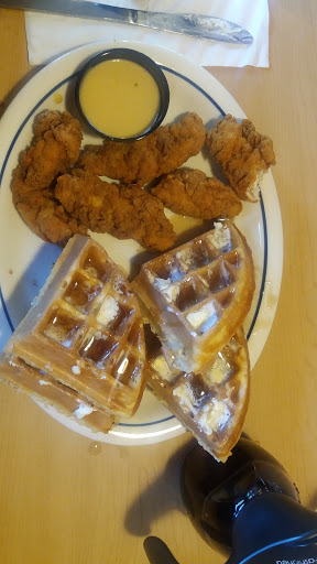 Good, friendly service and fast. The prices are great and the food is consistently decent. The new criss cross waffles are pretty good! I especially like the banana salted caramel flavor. I had to deduct stars because its never very clean, a lot of the lights flicker, which is annoying, and they are too slow to bus tables so you end up sitting next to dirty tables.