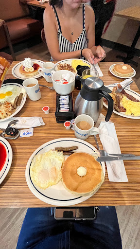 Always full, but seldom wait for seating. Child friendly, food is IHOP, perfectly cooked, always way too surgery, even without syrup, but why else do we go there. Friendly and accommodating staff very present management in a good way.