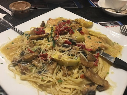 We came here because wed tried (and liked) two of the chains other restaurants: Marietta Diner and Cherokee Cattle Co. Pasta Bella was every bit as good as those and about 3-steps up from Olive Garden. Very good food, lots of it, friendly staff, and respectable prices. The ambiance was pleasant, the place was quiet and clean. Food was delivered in a reasonable time. Overall a very positive experience. I give 4 stars instead of 5 because Ive only been here once and there was room for improvement. It wasnt a bad experience by any means. Simply that I couldve been wowed or had a better experience.