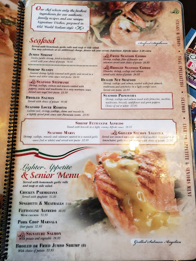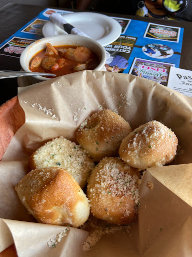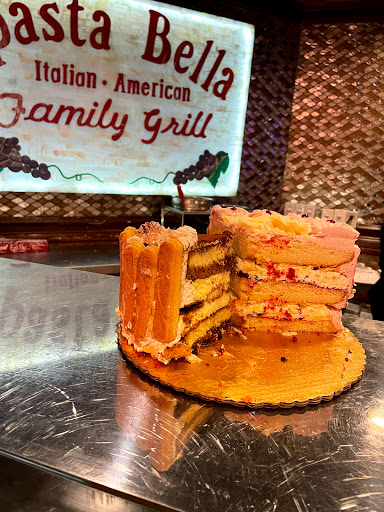 Pasta Bella came highly recommended to me by my mail lady. She kept saying that its the best food at such a reasonable price. Since Ive only lived in Marietta for a short time my husband and I like to go where the locals go so we thought we would give it a try. Our experience was just okay. The wait staff seemed pleasant but our waiter was not that knowledgeable about the items on the menu. He was not aware of the dish we ordered and we had to point it out to him on the menu. He did apologize stating that he was new. While waiting for our food he presented us with a basket of garlic rolls and something that looked like soup with sausage and peppers in it. The sausage was okay but I did not care for the runny sauce or the rolls, they did not taste fresh. Our entrees came and we actually enjoyed it! It was a lot of food so we did take home leftovers which we had for lunch the next day. This is probably the only reason I gave it three stars. The desserts looked amazing in the case so we took two pieces to go. The slices were huge but I have to say they lacked in flavor. We might go back again and try some of the other items on the menu to see if it is still worth the trip.