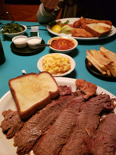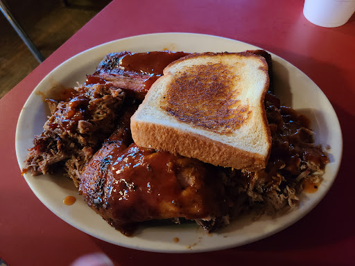 Been eating here for over 15 years. Pork is the best and outside cut is delicious. Every time my son goes he has a pint of Brunswick stew. I can no longer eat Brunswick stew anywhere but here, nothing anywhere is as good. Sides are good too but stick to he standard BBQ sides. Green tomatoes have a lot of coating but are good. Iced tea is served in giant cups. You can see the meat cooking in the pit. Sauce is the best if you like tomato base but they have a lot more.