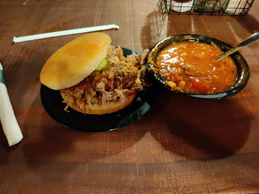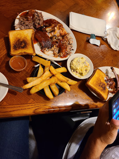 Very dissapointed. My husband and I went here based on all reviews. The outside smells amazing, smoked bbq. The inside was quaint and unique, you get a cracker barrel feel. We were first seated in the very back (past the indoor smoke grill area), the smoke was so heavy it burned my eyes and we had to moved. The menu had a lot of choices, the price was competitive with all the higher end bbq places. However the BBQ was not very good. The sauce to me tasted like sloppy joe mix (which they have on the menu). The plate my sandwich was served on barely encompassed the food (the sandwich was on a small hamburger buns so portion size was not the problem. Fries were a-la-cart, it to came on a very small serving dish. I felt like my fries were dragging across the table (gross). Even the server said let me get you a bigger plate so I dont feel like Im eating off the table ... Guess Im spoiled to Fox brothers and price was the same.