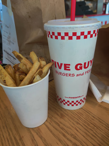 Fries are the top item here. They are delicious. 5.99 for the large, and it serves 3 people easily. Now for the down side. Yes, the bacon double cheeseburger was good, but not $8.99 worth of good. I honestly could not tell if the cheese was real, or processed cheese food . That simply should not be. A NINE DOLLAR burger should knock your socks off, period. There should not be an ounce of buyers regret. Freddies is almost right next door. 9 dollars there gets you an entire combo...the most expensive one, and not just the burger. Also, $2.39 for a large Coke is also out of line. So, 14 dollars for the burger, fries and coke. I would say 8 to 10 is more in line for the 5 guys experience. Fries: great. Burger: good, but way over priced. Soda: its typical soda, and also overpriced. See you at Freddies...or the del taco down the street.