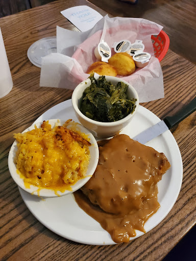 The name sums the place up, down home country cooking. The food itself was pretty simple & tasty, nothing over seasoned. My husband & I decided to give this place a try since its only minutes away from home. Reasonable prices, health inspection sign rated a 91, and it had a nostalgic/vintage atmosphere... old signs on the walls, art deco mirrors, the front waiting area has a mantle with antique oil lamps, wood bench seating looks like they were old church pews. It was pretty packed when we got there. Warning: The noise level gets pretty loud too when packed... you cant even hear yourself think at times. (Plus add a screaming toddler that reached ear piercing volumes. What fun! At least she sang familiar tunes once in a while and I would join in... "E, I, E, I, Ohhh!")One true disappointment was when we walked in and were never greeted nor explained to that a name was to be taken down for the wait. And although very busy, the servers that came up to the front, numerous times, had every opportunity to make eye contact and explain that there is a wait. Doesnt matter what type of service establishment you run, customers should always be greeted and acknowledged . The saving grace, aside from the food, was our server, Lexi. She was very nice and easy to talk to, a very accommodating server. She always checked on us and was on top of refilling our drinks or if we needed anything. The place is worth giving a try if you enjoy country cooking.