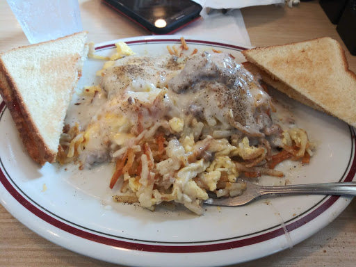The smothered breakfast was cooked to perfection. The service was friendly and timely. Well be back!