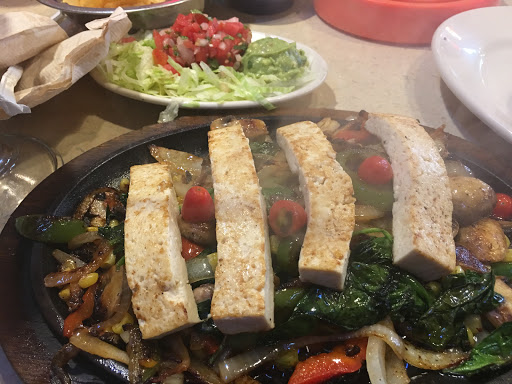 Visiting from NY. We arrived and asked for a booth. Then rethinking it asked if we could sit outside. We were told they were expecting a large group of 17. Right before we were seated the "large" group came and sat inside! The tables outside were empty. Then after a half an hour, our food came sizzling hot & burnt. How does chicken with pepper & onions on a skillet taste like burnt ashes? If it wasnt for the beans, lettuce, tomato, guacamole with cheese & sour cream! Thank God for the free pepperments!