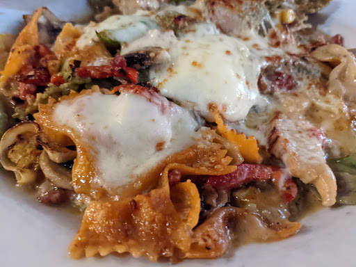 First time at Pasta Max and will be our last time. One of us ordered the chicken Alfredo and got an unpleasant surprise. Have seen restaurants use linguine pasta with Chicken Alfredo but have never seen egg noodles used.....dish had no seasoning and was flavorless! The rest of us had the lasagna based on the recommendation of the waitress. Again disappointment! Flavor was good but there was only one layer, barely any meat and who makes lasagna without any ricotta cheese? As you can see from the picture it doesnt even look like lasagna. Grand total for 3 entrees, 2 desserts and 3 sodas $70 + $10 tip!!