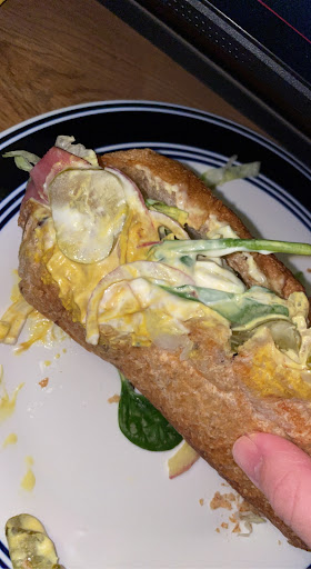 Someone should report this place to corporate. I asked for a footlong rotisserie chicken Deluxe. Not only did they not know what Deluxe meant, they did not have rotisserie chicken. They were selling cut up patties for the rotisserie chicken sandwich. I walked out. I usually never leave anyone a bad review and they were polite but this is not what a Subway should be.