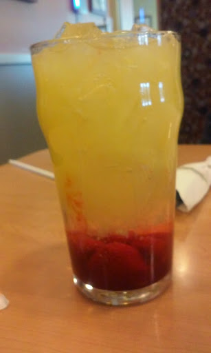 The food was good the service was a woman that hates here job. But i can deal with that. We could not finish eating because we observed 3 employees wrapping silverware im napkins. They coughed on their hands and sneezed than proceeded to touch the silverware. DISGUSTING! So we paid the bill and left. And dispite the waitress with the bad attitude still left a very generous tip. So maybe that cheered her up and had a better attitude towards future customers.