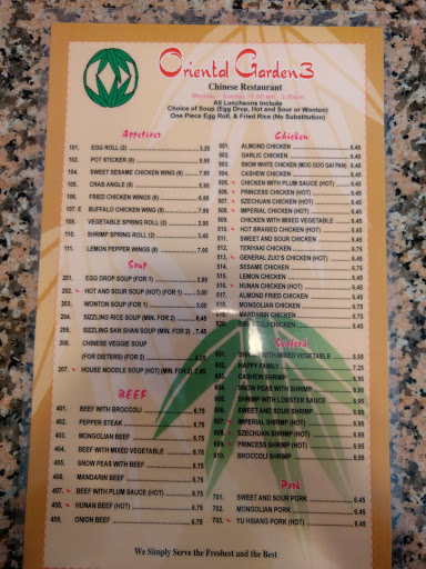 I rate the Oriental Garden #1! Best food, prices, & staff in town!